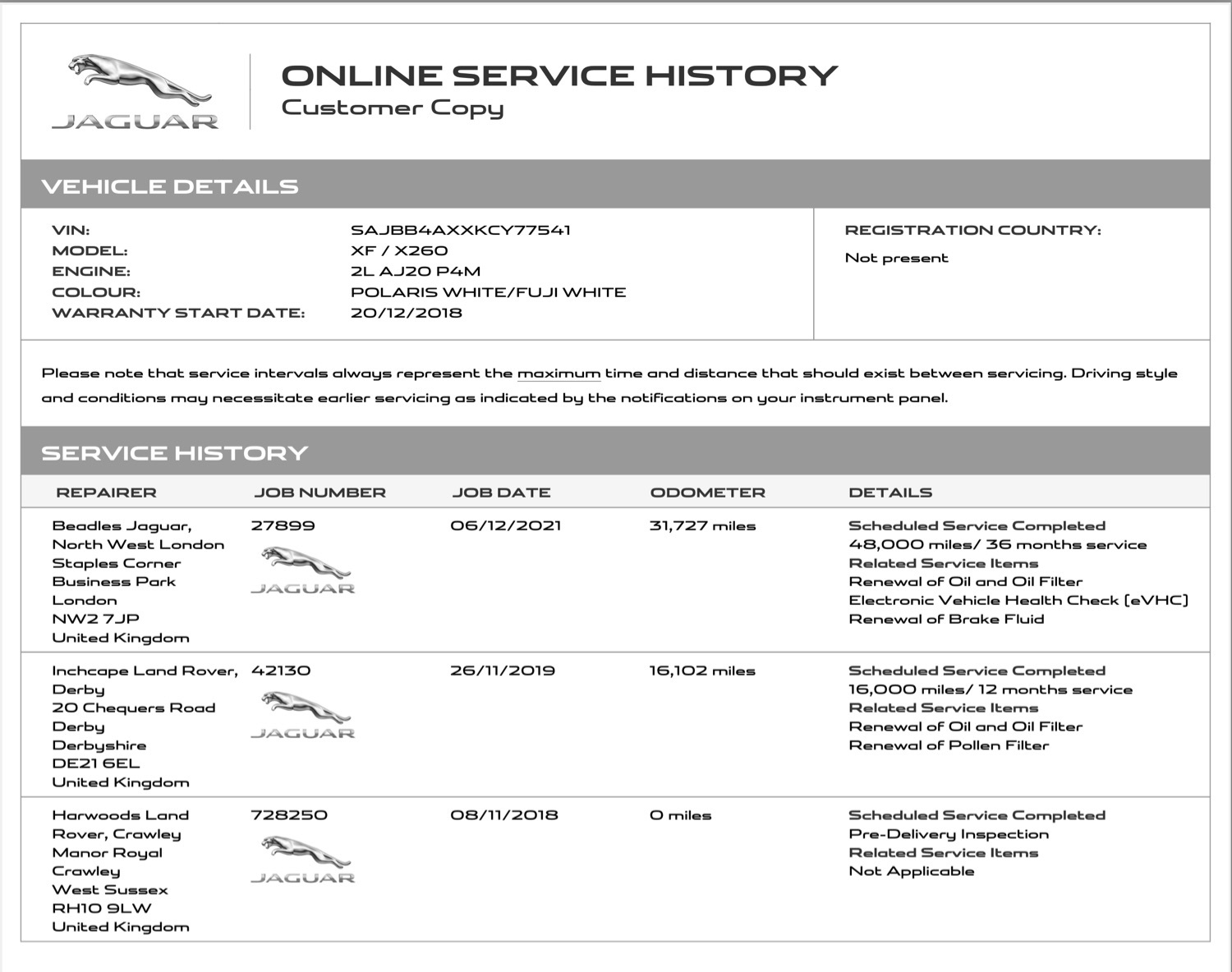 Full Jaguar service history. (With a video from Jaguar on the general condition of the vehicle)